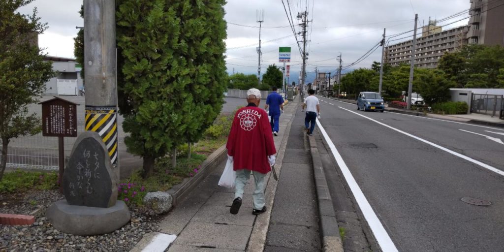 吉田商工振興会の会員11名が集まり、吉田小学校~長野吉田高校東交差点~相ノ木通り~ながの東急ライフさんに戻るコースと、辰巳隧道~運動公園北口交差点~辰巳公園の側道~ながの東急ライフさんに戻るコースのふたつのグループに分かれて、ゴミ拾いを行いました。