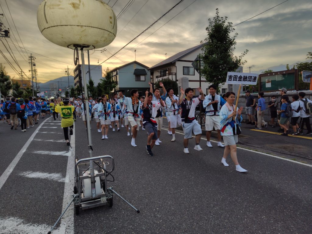 7月20日(土)、北長野停車場線付近において「第49回吉田びんずる」「第17回何丸踊り」を開催しました。今年から開催時間帯を通常の夕方以降へと戻し、多くの皆様よりお褒めの言葉を頂戴しました。当日は各地区や企業、学校等の団体による踊り連に多数参加いただき活気に満ちた行事となりました。協賛金および交通規制等でご協力を頂戴致しました皆様に感謝申し上げます。