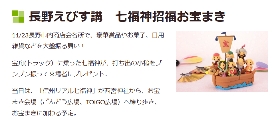 11月23日(水・祝)に市内5会場にて、令和4年度 七福神招福お宝振る舞い を開催いたしました。 今年も豪華賞品やお菓子などを大盤振舞!! 打出の小槌をぶんぶん振っちゃいます!! 吉田商工振興会の会場 …